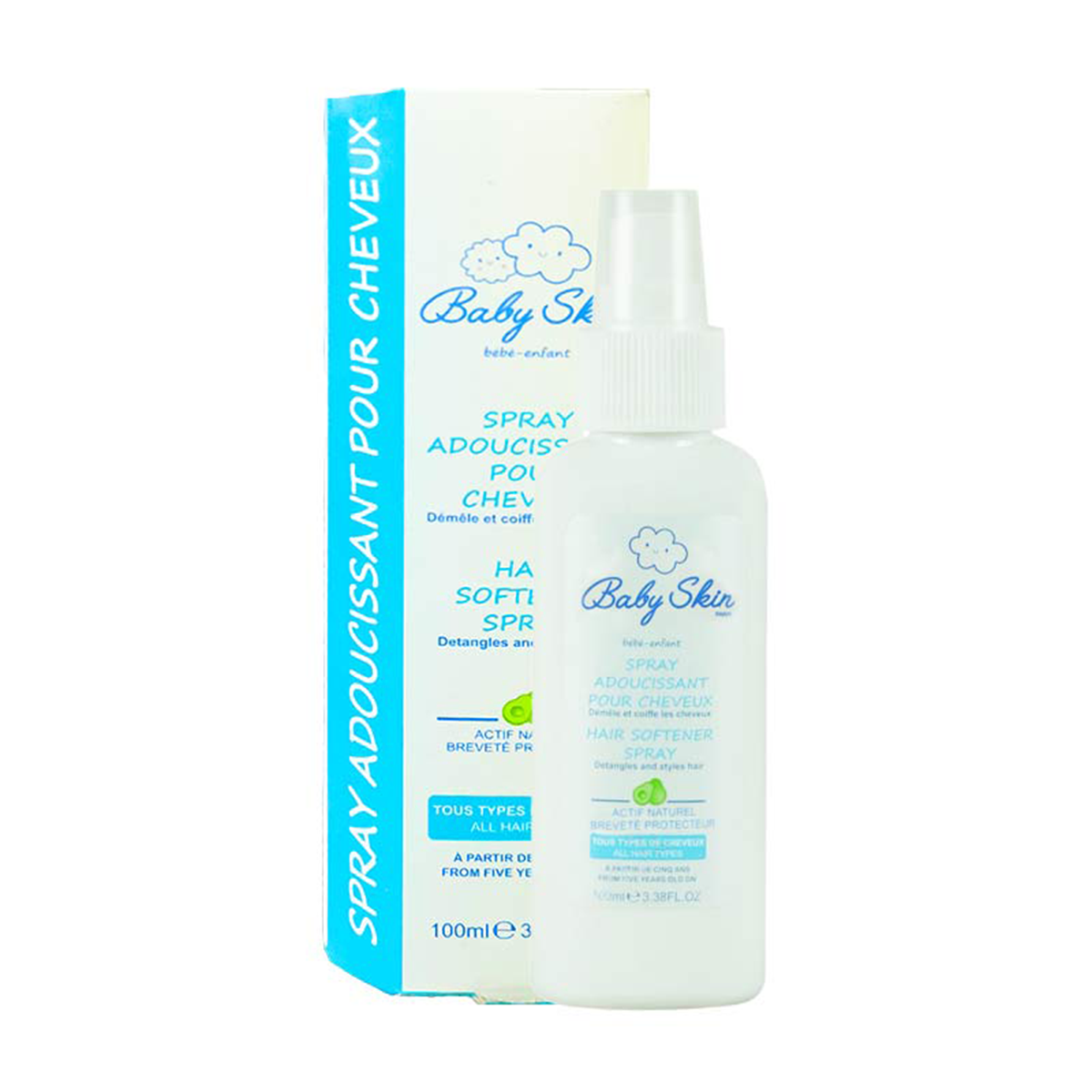 موهای کودکان از ضخامت بسیار کمی برخوردار است و به راحتی گره می خورند. اسپری گره باز کن مو بیبی اسکین یکی از محصولاتی است که غنی از ترکیبات مغذی بوده و به شانه پذیری موهای کودکان کمک می کند. اسپری گره باز کن و نرم کننده مو کودک بیبی اسکین با داشتن روغن آووکادو موجب حفظ رطوبت و درخشندگی تارهای مو شده و از شکنندگی ساقه مو جلوگیری می کند.