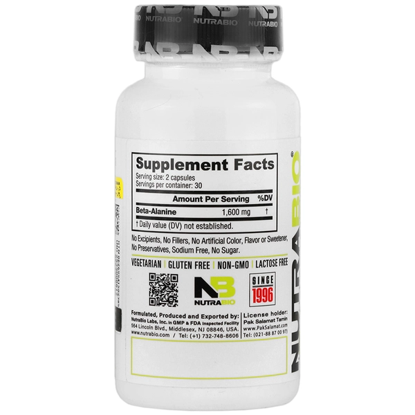 مکمل بتا آلانین نوترابایو با ارائه 800 میلیگرم بتا آلانین در هر کپسول، بهصورت خالص و بدون افزودنیهای مصنوعی تولید شده و برای بهبود عملکرد بدنی ورزشکاران مناسب است. این محصول تحت لیسانس کمپانی شناخته شده نوترابایو آمریکا تولید میشود و برای گیاهخواران نیز قابل استفاده است.
