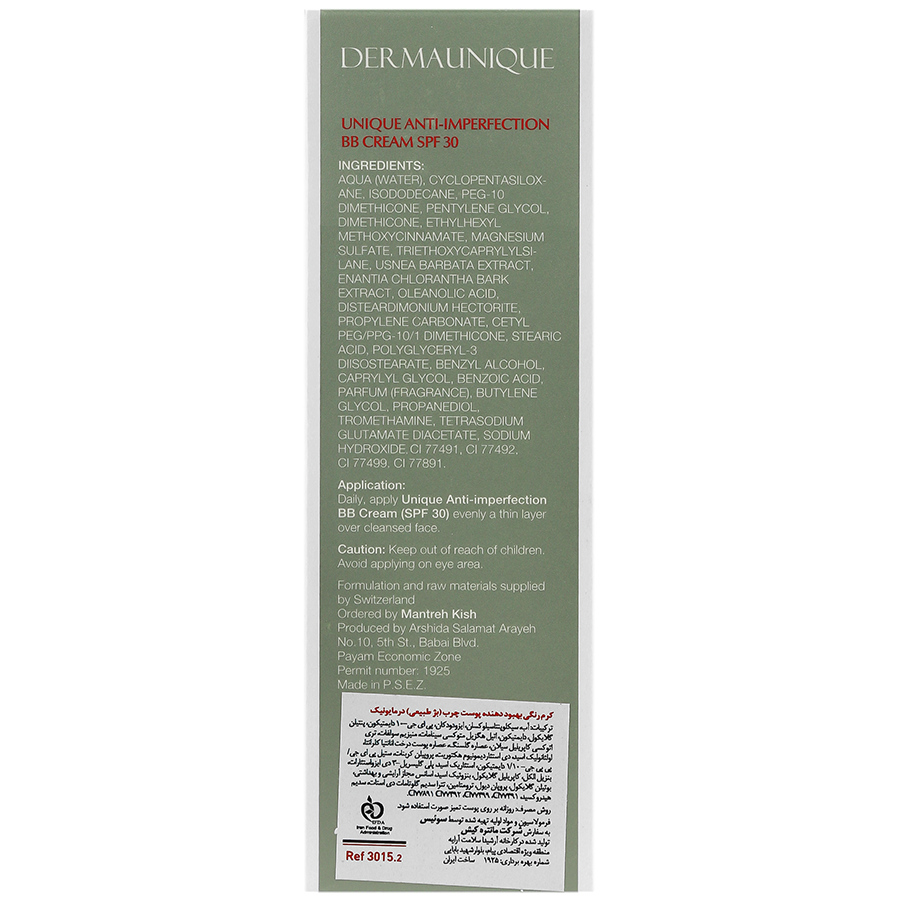 Dermaunique BB Cream ظاهری مات و غیر چرب به پوست داده و با بستن منافذ پوست، پوستی یک دست و صاف را ایجاد خواهد کرد.