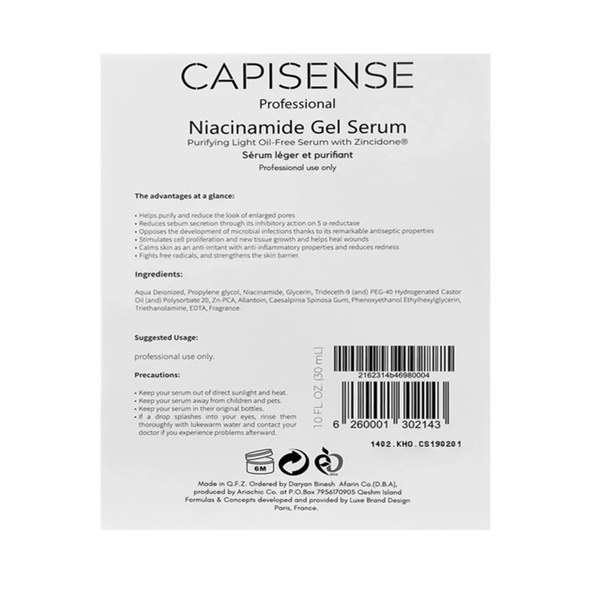 سرم نیاسینامید کپیسنس محصولی منحصر به فرد است که با استفاده از خواص نیاسینامید، تاثیرات ویژه ای روی پوست دارد. سرم نیاسینامید کپیسنس با مهار و کنترل فعالیت آنزیم 5 آلفا ردوکتاز، در کاهش ترشح چربی پوست موثر است و سبب ایجاد جلوه ای مات روی پوست شده و براقیت آن را کاهش می دهد. این محصول به مرور زمان، سبب کاهش و جمع شدن منافذ باز پوست شده و جلوه ای صاف روی پوست ایجاد می کند. علاوه بر این سرم ژل نیاسینامید کپیسنس دارای اثر آنتی باکتریایی نیز می باشد و مانع از تکثیر باکتری های مولد جوش و آکنه می گردد.