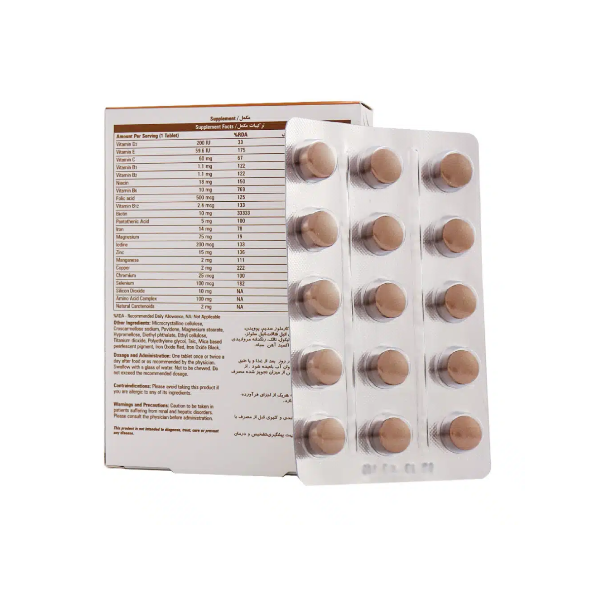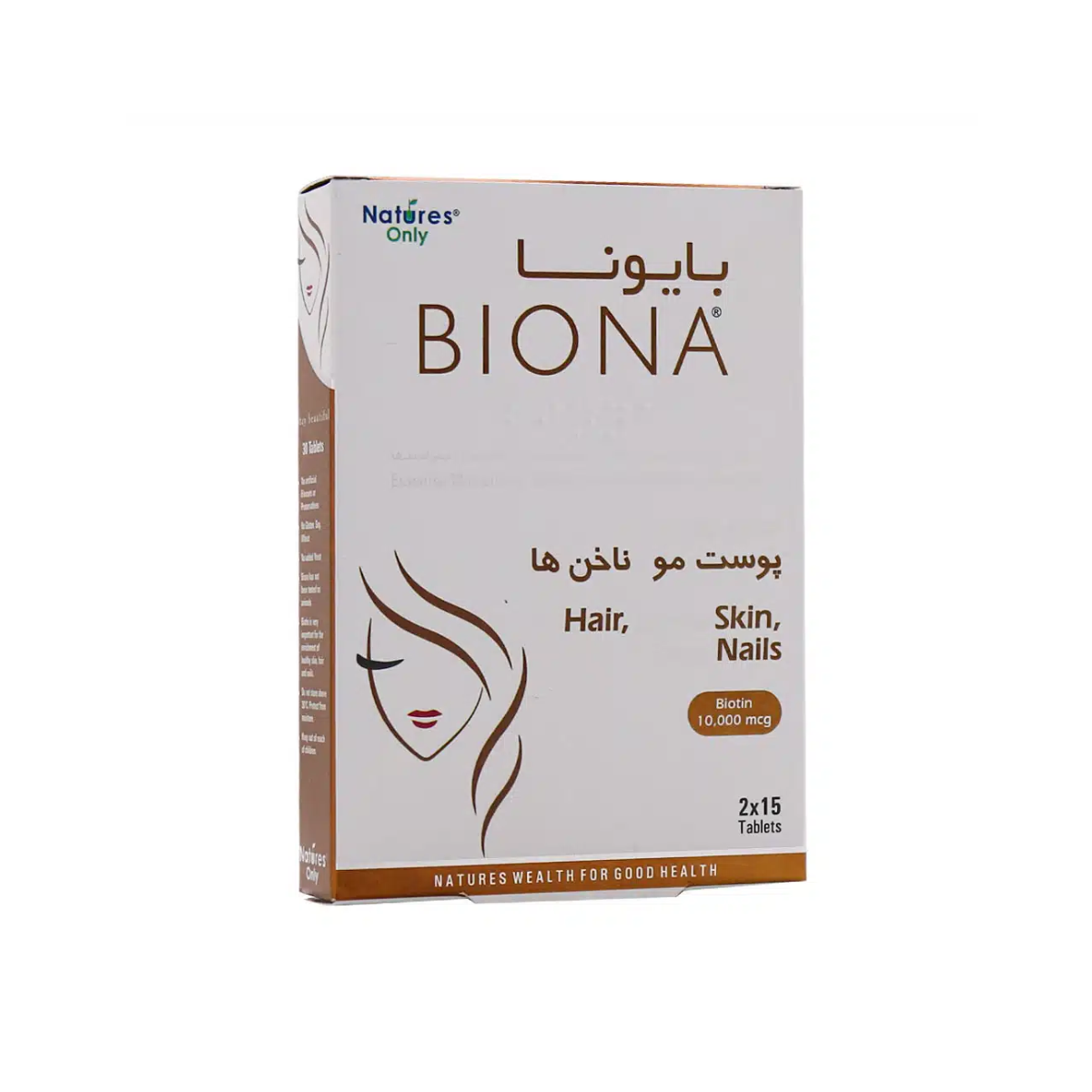 - قرص بایونا، دارای دوز بالایی از بیوتین برای کنترل ریزش و رشد بهتر مو