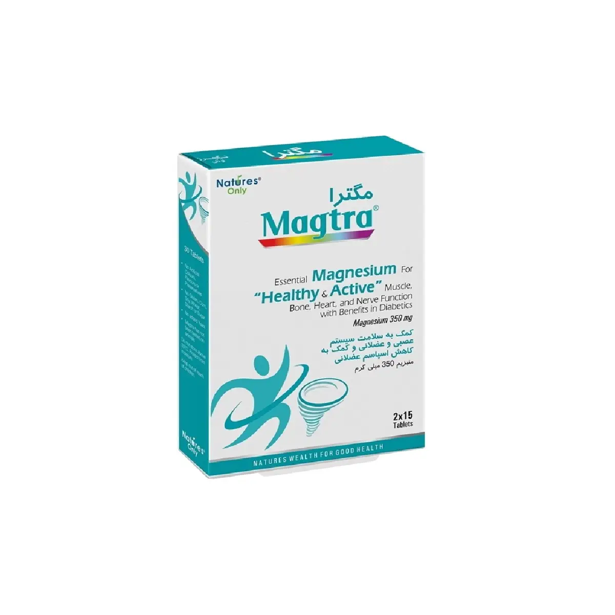 قرص مگترا یک مکمل تغذیهای است که حاوی 350 میلیگرم منیزیم در هر قرص بوده و بهصورت ترکیبی از منیزیم سیترات (10 میلیگرم) و منیزیم اکساید (340 میلیگرم) ارائه میشود. مگترا منیزیم عمدتا برای جبران کمبود منیزیم، حمایت از عملکرد سیستم عصبی و عضلانی، کاهش اسپاسم عضلانی و بهبود سلامت عمومی بدن مورد استفاده قرار میگیرد. فرمولاسیون قرص منیزیم مگترا فاقد مواد آلرژن رایج مانند گلوتن، سویا، گندم و همچنین شکر بوده و برای استفاده افراد با حساسیتهای غذایی خاص مناسب است.
