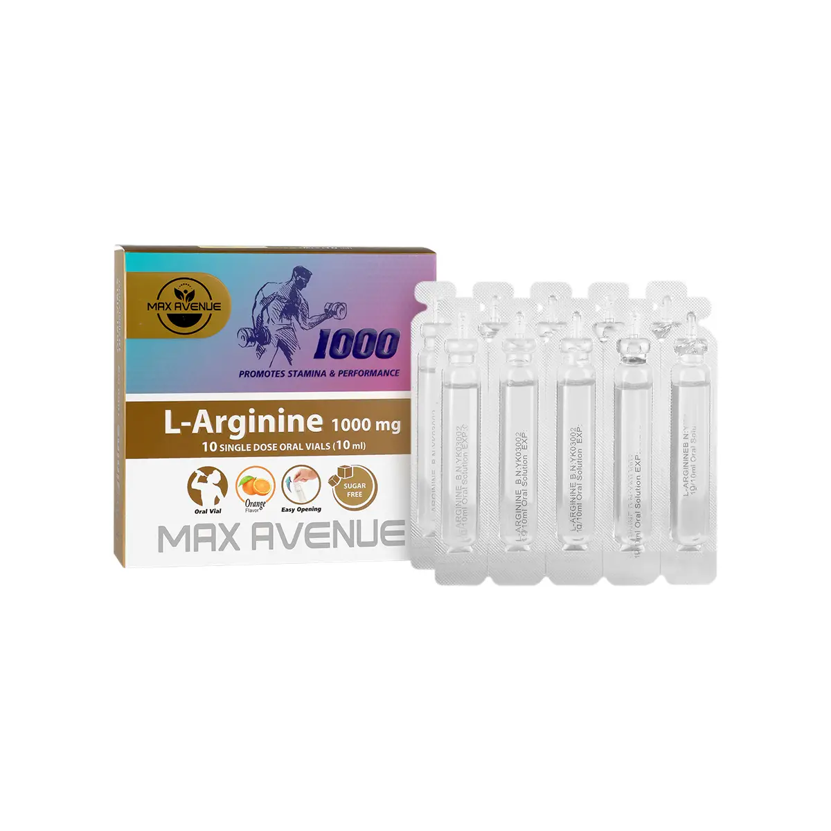 - ال آرژنین max avenue، حاوی 1000 میلیگرم ال آرژنین به ازای هر ویال