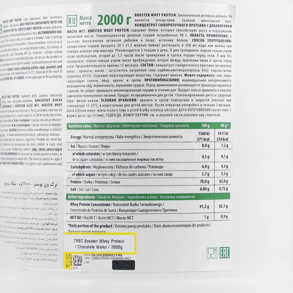 • پودر وی بوستر 2000 گرم، تحت لیسانس Trec Nutrition لهستان