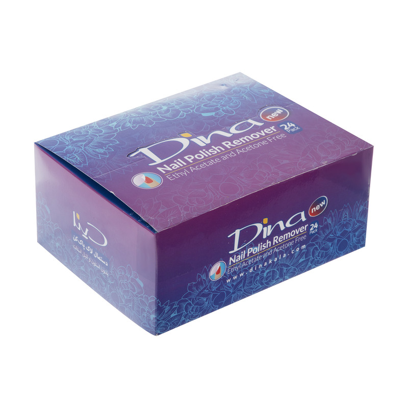 - پد لاک پاک کن دینا به عنوان پدی بزرگ برای پاک کردن لاکهای انگشتان پا و دست است که استفاده از آن را راحت نموده است. این محصول در بسته بندی ۵ عددی فاقد استون و پارابن است و برای ناخن و پوست اطراف آن مضر نخواهد بود.
