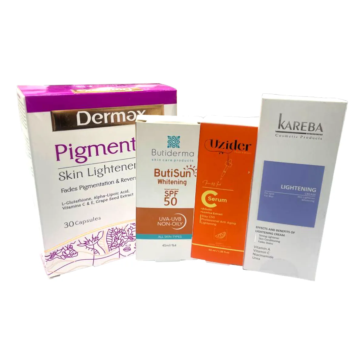 محصولات موجود در پکیج : سرم ویتامین سی یوزیدر،کرم روشن کننده ماربا،ضد لک ضد افتاب بیوتی درما،پیگمنتا