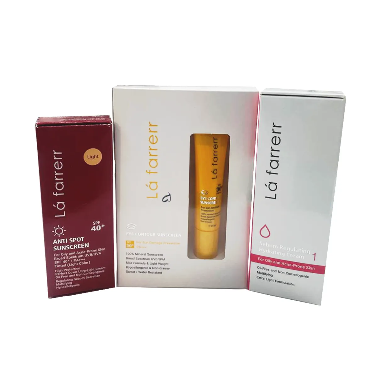 محصولات موجود در پکیج : موطوب کنند پوست چرب لافار ،ضد اقتاب دور پشم لافار ، ضد افتاب ضد لک پرب لافار