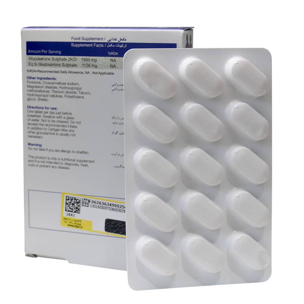 - حاوی 1126 میلی گرم گلوکزآمین سولفات خالص به ازای هر قرص