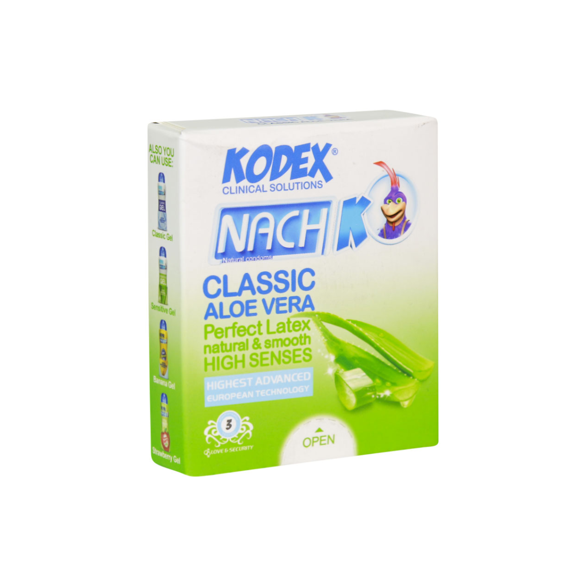 کاندوم کدکس مدل کلاسیک آلوئه ورا دارای ماده روان کننده بوده و موجب بالا بردن لذت جنسی میشود. این کاندوم با لاتکس طبیعی و با کیفیت فوقالعاده بالا جهت حفاظت، اطمینان و راحتی آقایان در نظر گرفته شده است. ناچ کدکس تنها کاندومی است که از لاتکس صد در صد طبیعی تولید میشود. به همین علت کاملا ضد حساسیت بوده و در آن هیچ گونه ماده پلاستیکی به کار نرفته است. خاصیت ارتجاعی این محصول یکی از مزیتهای دیگر آن است که موجب جا نماندن کاندوم در واژن میشود. با خرید کاندوم ساده سه لایه kodex از پارگی محصول خبری نیست و رایحه مطبوع آن نیز از آزردگی خاطر زوجین جلوگیری میکند. همچنین این محصول دارای نوک ذخیره جهت جمع آوری اسپرم و افزایش امنیت و اطمینان بیشتر است.