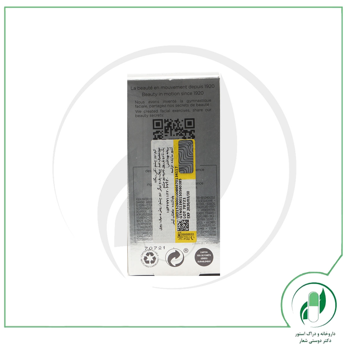 صبح و شب روی پوست تمیز و خشک دور چشم با حرکات ضربه ای استفاده شود.