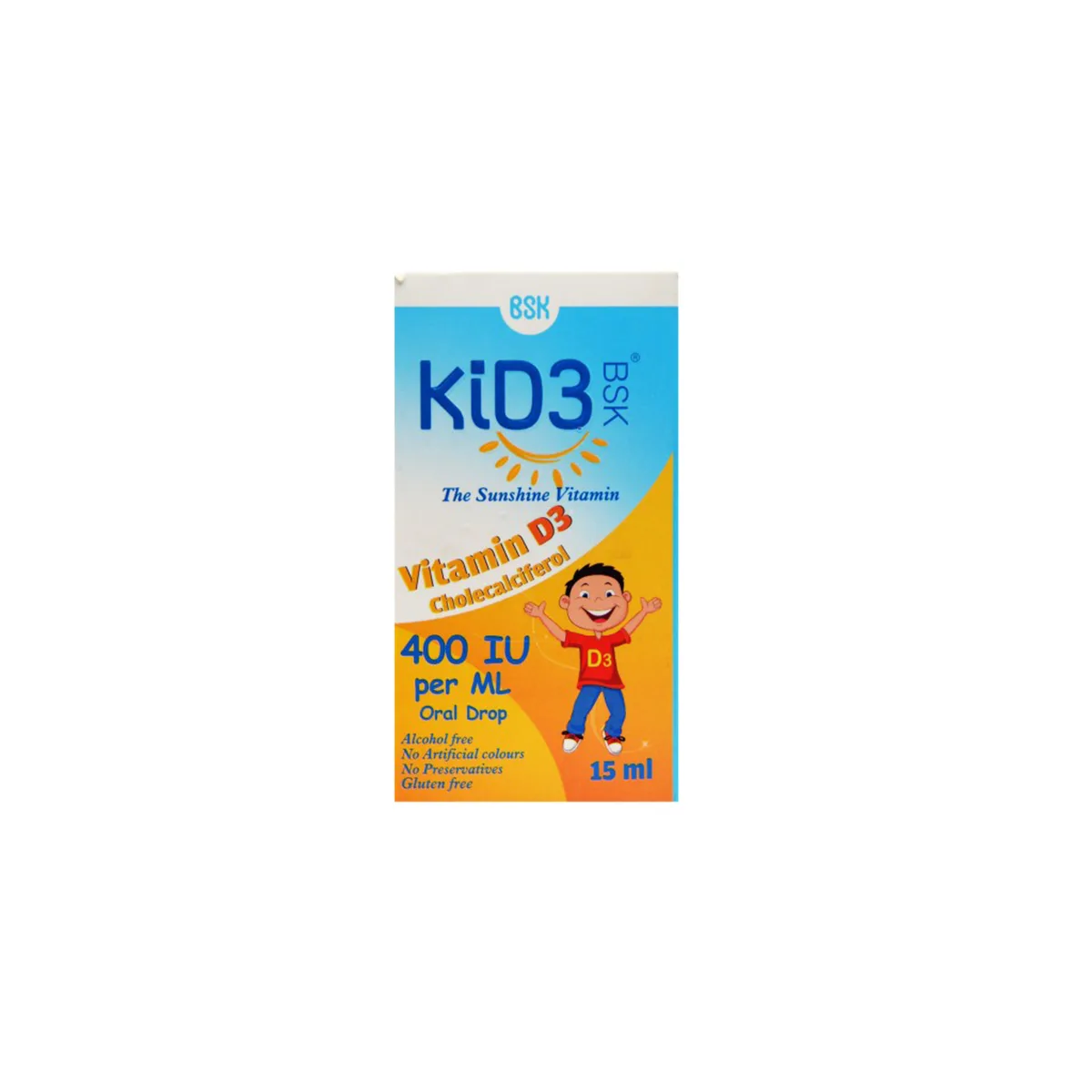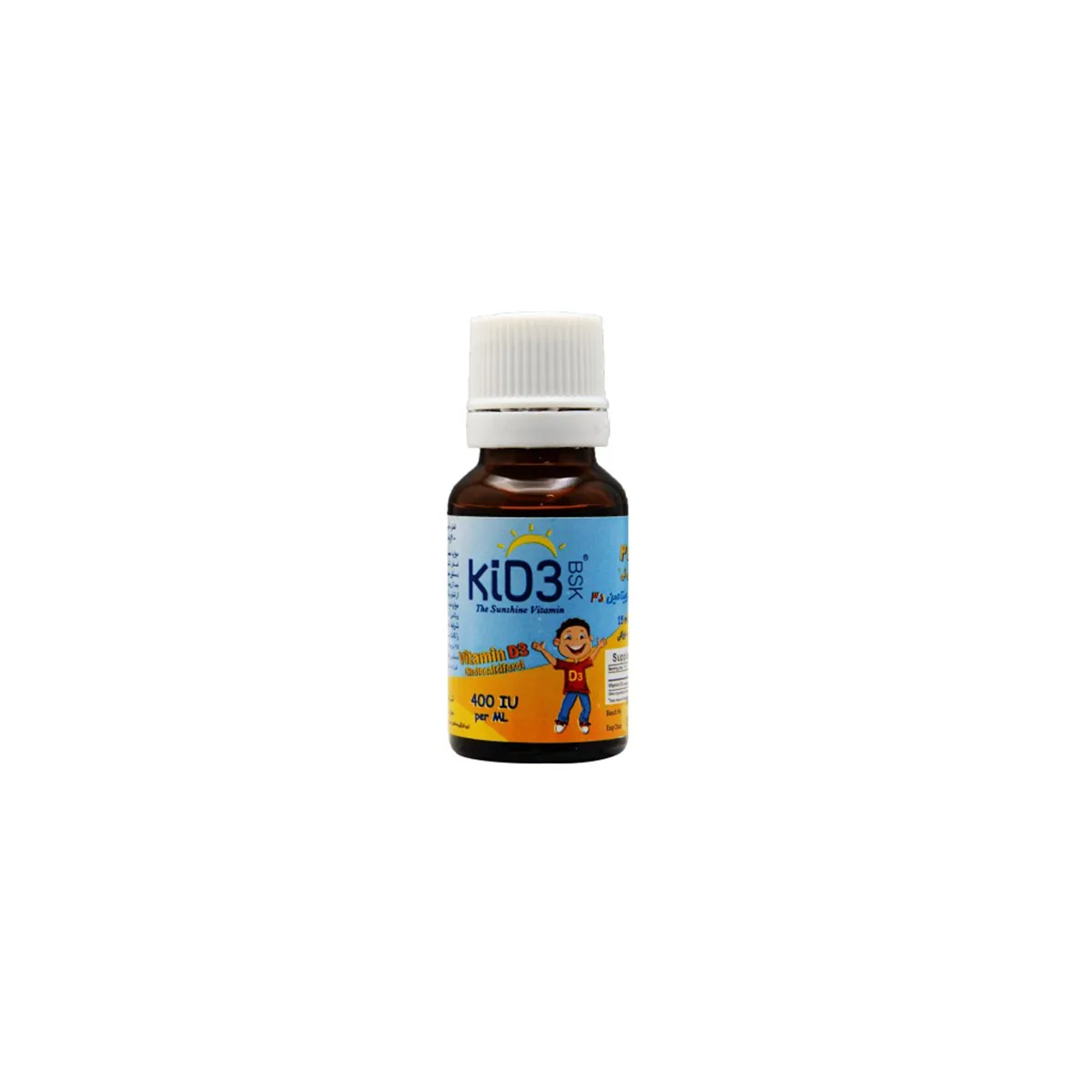 قطره کید3، یک مکمل تغذیهای فرموله شده برای کودکان است که فراهم کننده 400 IU ویتامین D به ازای هر میلی لیتر میباشد. قطره کید3، در جلوگیری از ابتلای کودکان به راشیتیسم (نرمی استخوان)، عملکرد طبیعی سیستم ایمنی و سلامت عضلات بدن مفید است. قطره کید3، در بطریهای شیشهای قطره چکان دار به حجم 15 میلی لیتر به بازار عرضه میشود. قطره kid3 بنیان سلامت کسری (BSK)، توسط شرکت داروسازی زیست تخمیر تولید میشود.